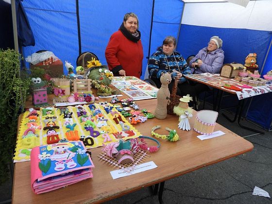 Еще в палаточном ряду есть выставки поделок от воспитанников Детского оздоровительно-образовательного центра и декоративно-прикладного искусства от членов Карпинского отделения ВОИ.