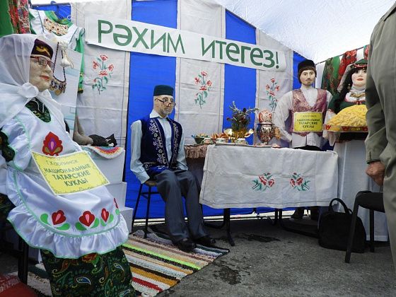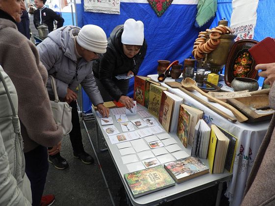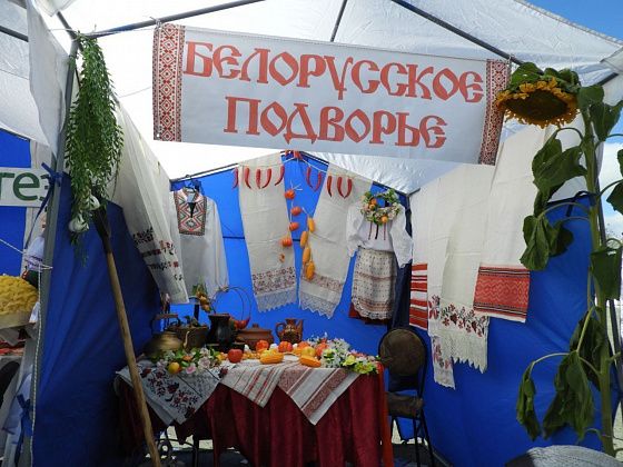 Также на площади работает презентация национальных подворий, где представлены экспозиции на тему культуры разных национальностей. На татарском подворье, например, можно посмотреть на национальные татарские куклы в человеческий рост. А у палатки с экспозицией казачьего подворья всех желающих угощают чаем из самовара. Также есть белорусское, немецкое, ханты-мансийское и русское подворья.