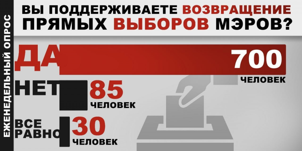 Большинство горожан хотят вернуть прямые выборы мэров - такие результаты показал опрос, который мы проводили на наших сайтах и в социальных сетях, в группах издательской группы "ВК-Медиа".
