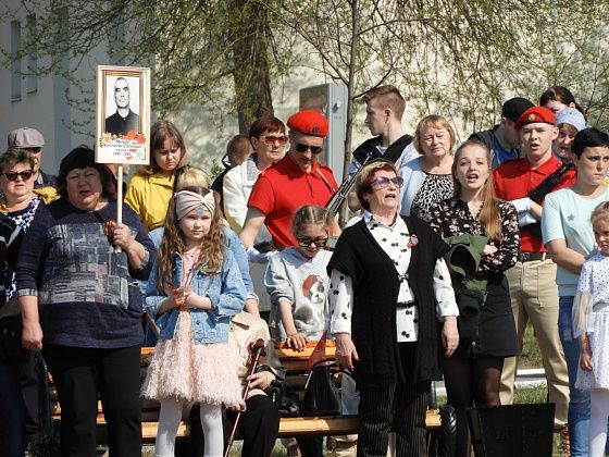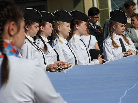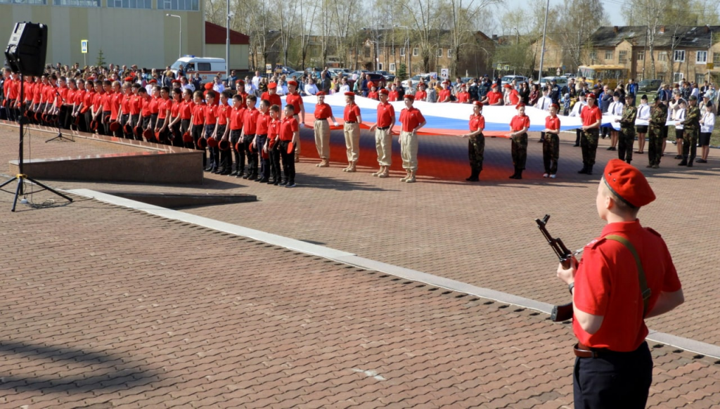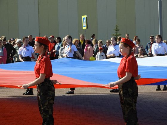 Мероприятие началось в 10.00. К этому времени на площади собрались несколько сотен горожан. Люди пришли с красными гвоздиками, черными и оранжевыми воздушными шарами, штендерами «Бессмертного полка». Впереди всех стояла шеренга юнармейцев. А центр площади украсил огромный флаг России, который растянули школьники, воспитанники военно-патриотических клубов.