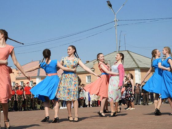 Праздничный митинг завершился вальсом школьников и выступлениями коллективов городского дворца культуры. В общей сложности мероприятие длилось один час.