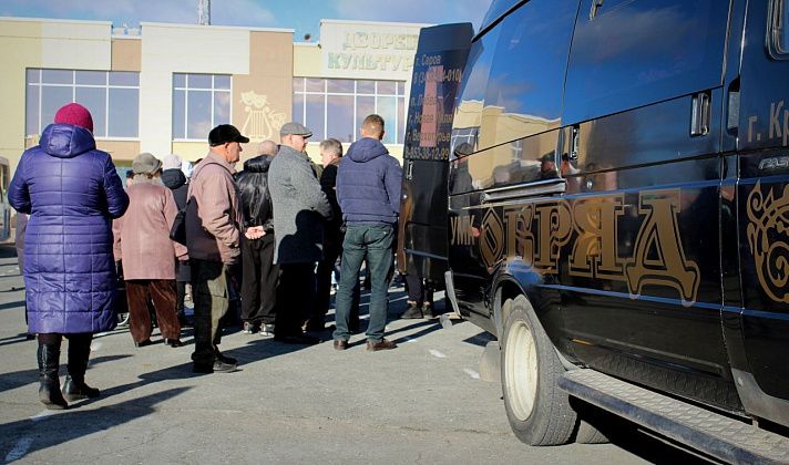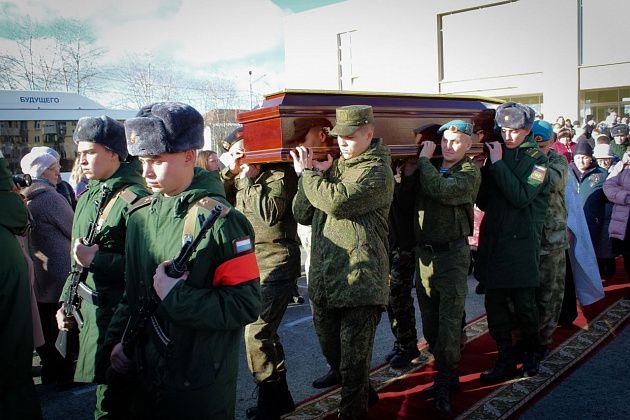 Как и в случае с другими погибшими на фронте между Россией и Украиной карпинцами, прощание с Александром проходило в стенах Городского дворца культуры. Там, после 11.00, собрались сотни горожан. Кроме родственников, друзей и знакомых Александра Мухьянова, проститься с ним пришли военные и горожане, которые не могли отнестись равнодушно к смерти соотечественника.