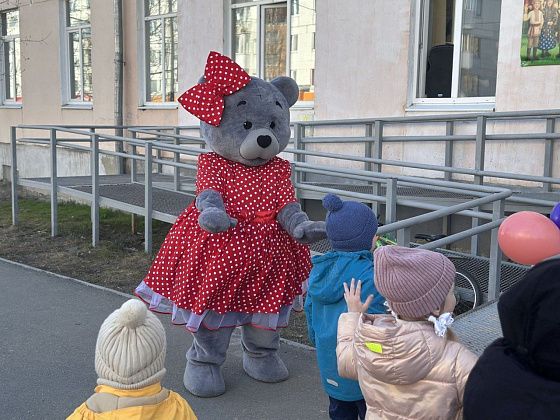 В 16.30 у крыльца библиотеки начался флешмоб с современными и национальными танцами и книжными викторинами. Некоторые юные карпинцы пришли в национальных костюмах. Пока дети танцевали, родители делали снимки на память. Кроме прочего, развлекать участников акции помогал аниматор в костюме медведя.