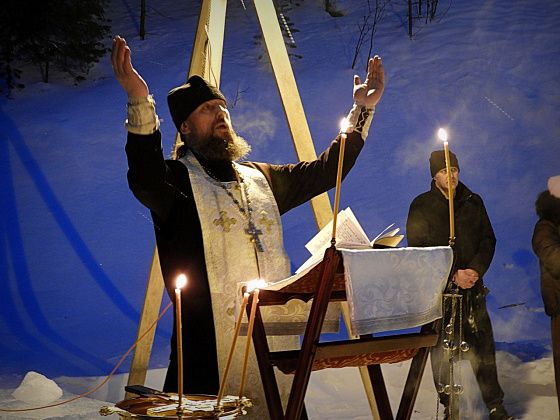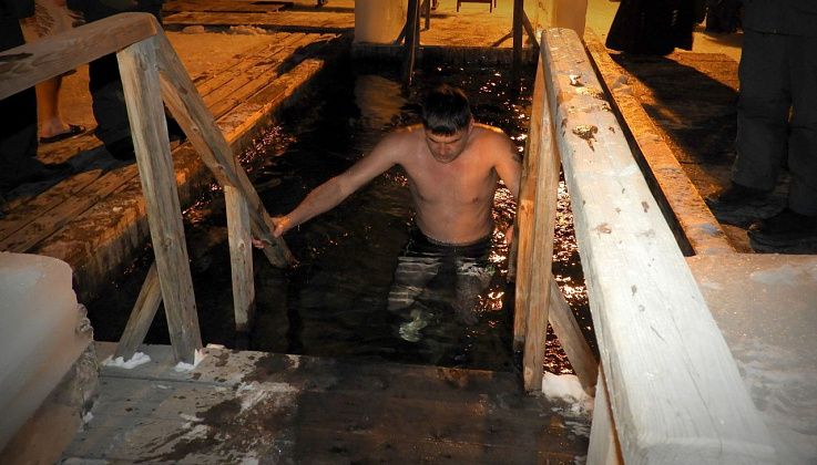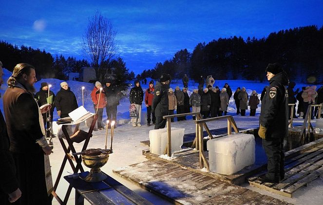 Обряд освящения воды проводил настоятель Введенского собора Виктор Эльрих. К 17.00 возле купели собралось около полусотни человек. Из них искупаться приехали около десятка. Остальные приехали, чтобы поддержать родственников или чтобы умыться освященной водой.