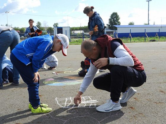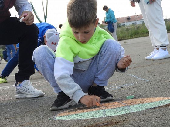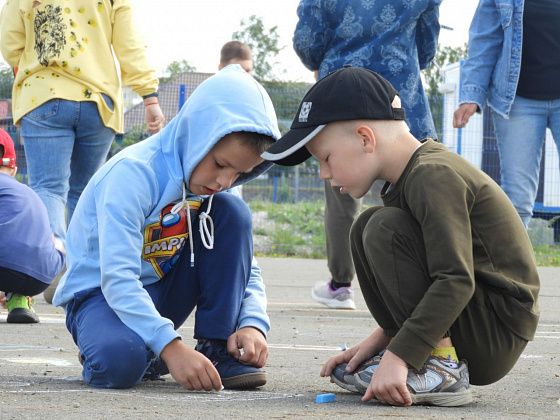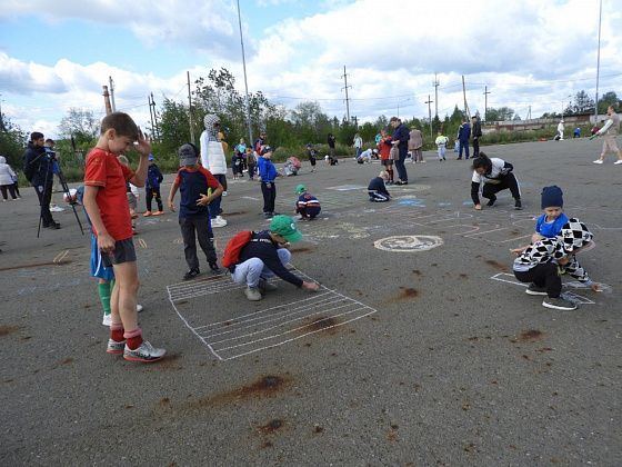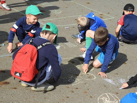 После всех состязаний детей пригласили на малое поле, где ребятам раздали цветные мелки и позвали разрисовать весь асфальт. В этом деле участвовали как сами дети, так и их родители.