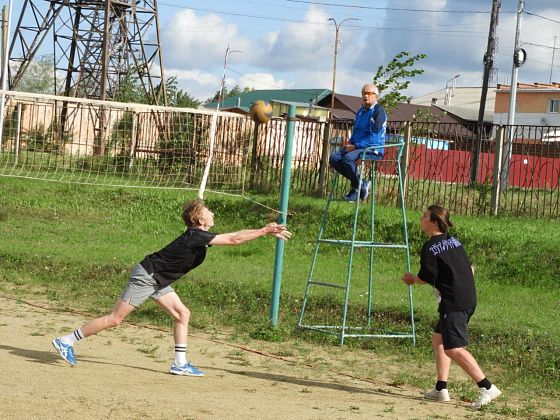 Тем временем на стадионе стартовал турнир по пляжному волейболу среди мужских и женских команд.А в 11.00 стартовали соревнования по легкой атлетика. Далее по плану на стадионе пройдут: летний биатлон, многоборье среди семей и футбольный блок состязаний.